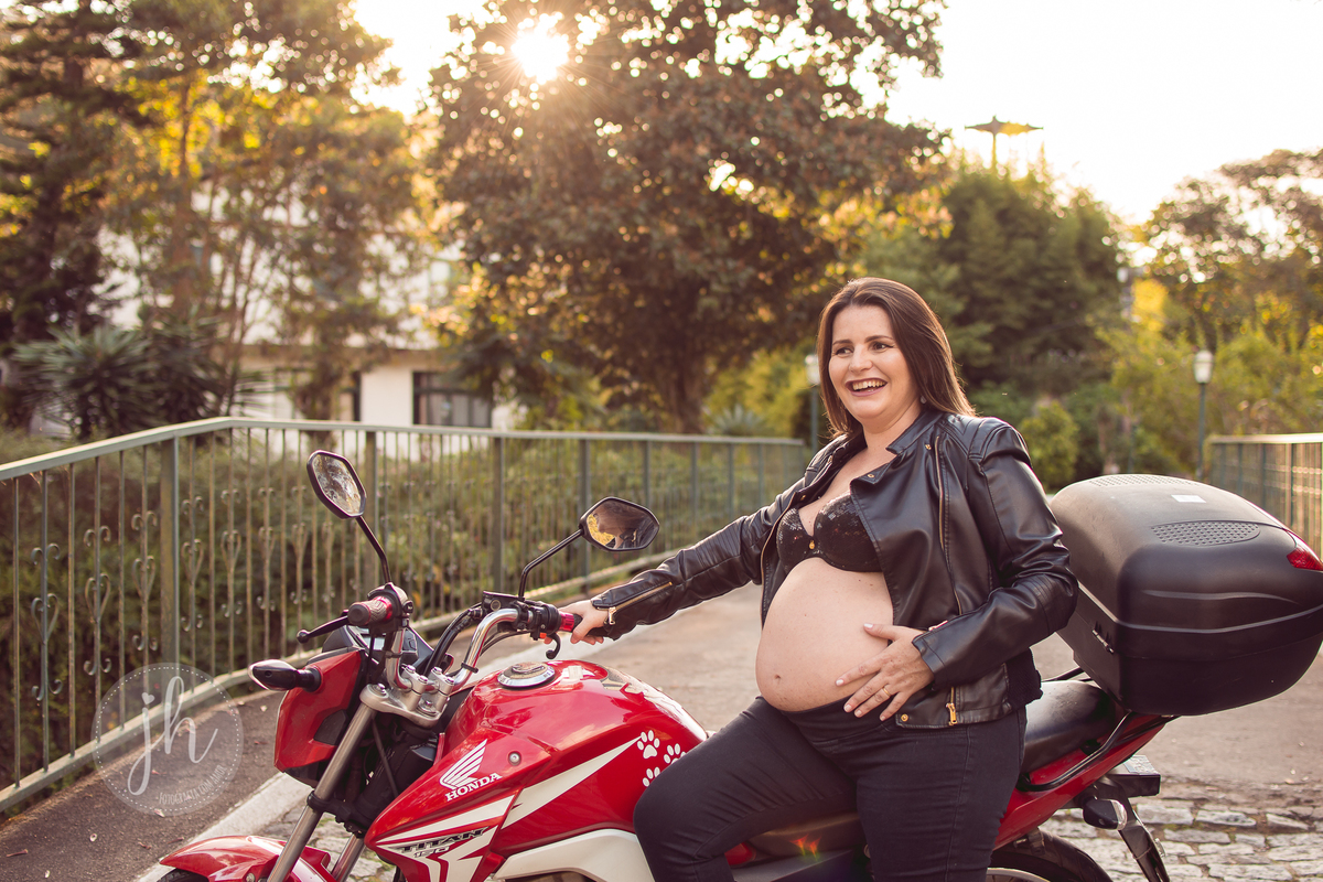 Ensaio gestante com a Moto da Mamãe, super legal