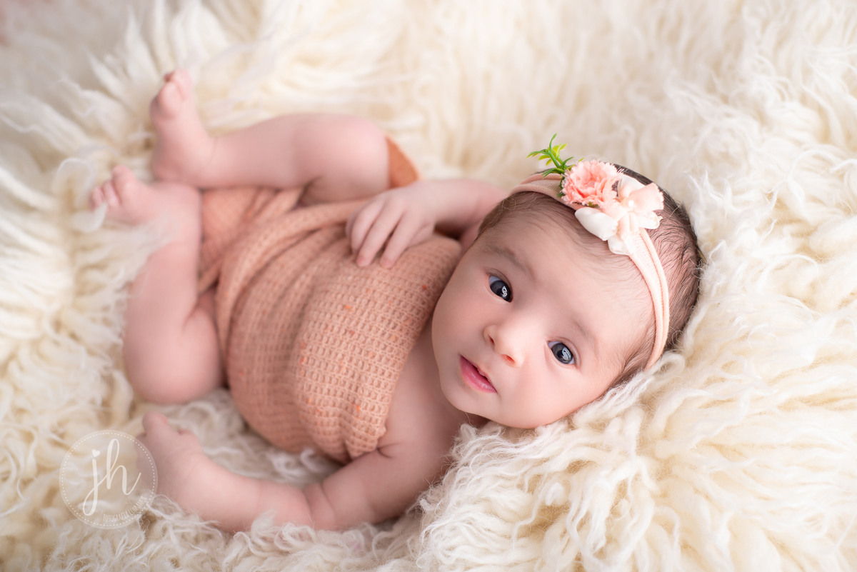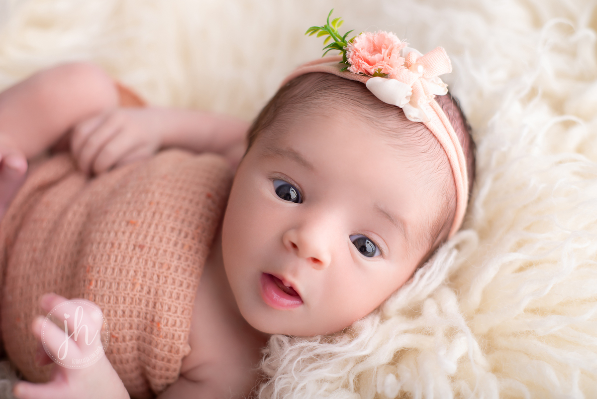Uma bebezinha muita esperta que quis olhar quase tudo o que aconteceu no seu ensaio newborn,
